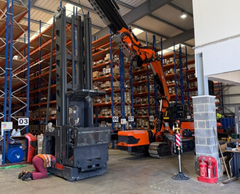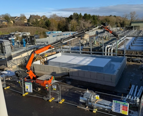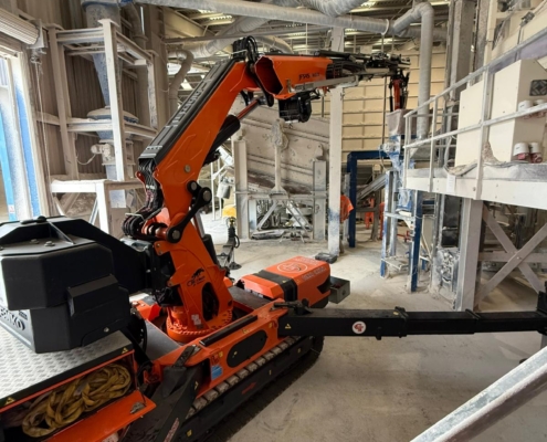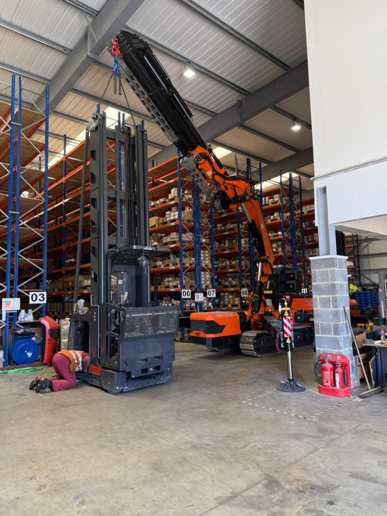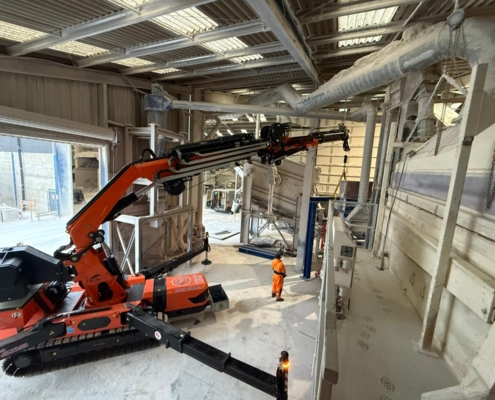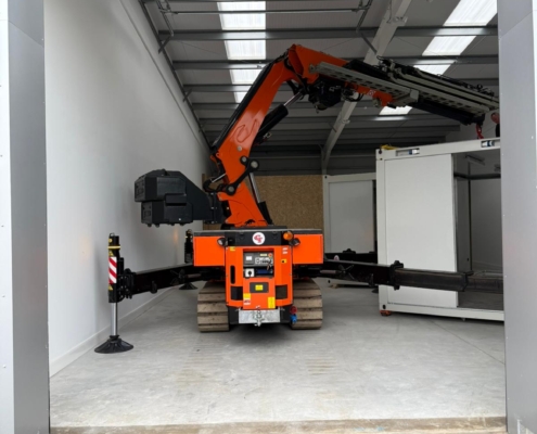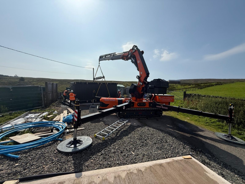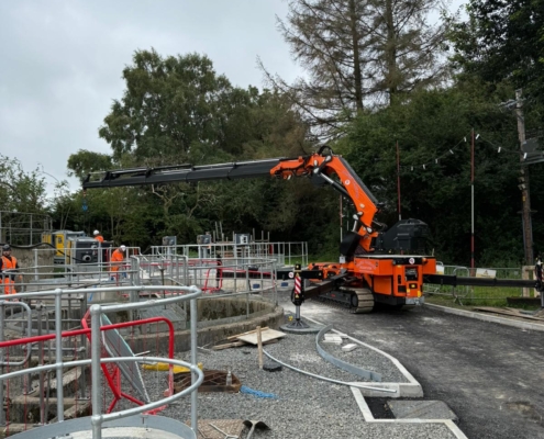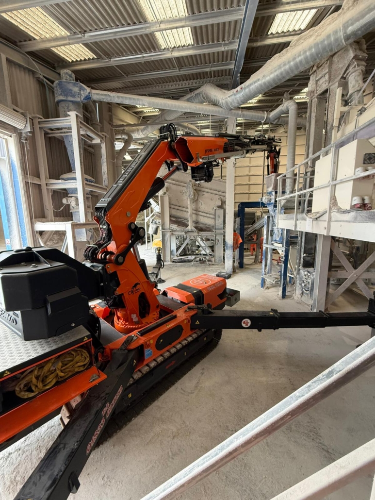 This machine is also at home within a factory environment, less room to setup that conventional crane, low ground pressure, fully electric so zero emissions if required.