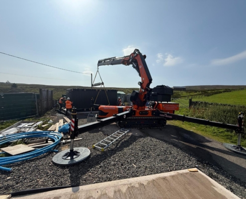The Jekko also can lift and carry allowing movement of equipment across a site where a truck mounted crane just simply can’t go, payload of 3ton on the machine on its carrying platform and ability to lift 20ft shipping container, we can add a trailer to the machine which will allow us to tow additional equipment making extremely efficient machine within a site.